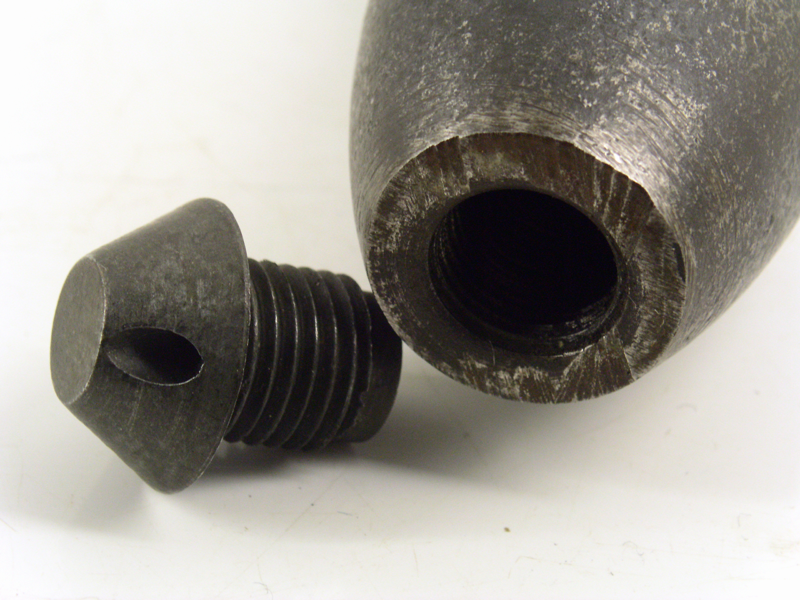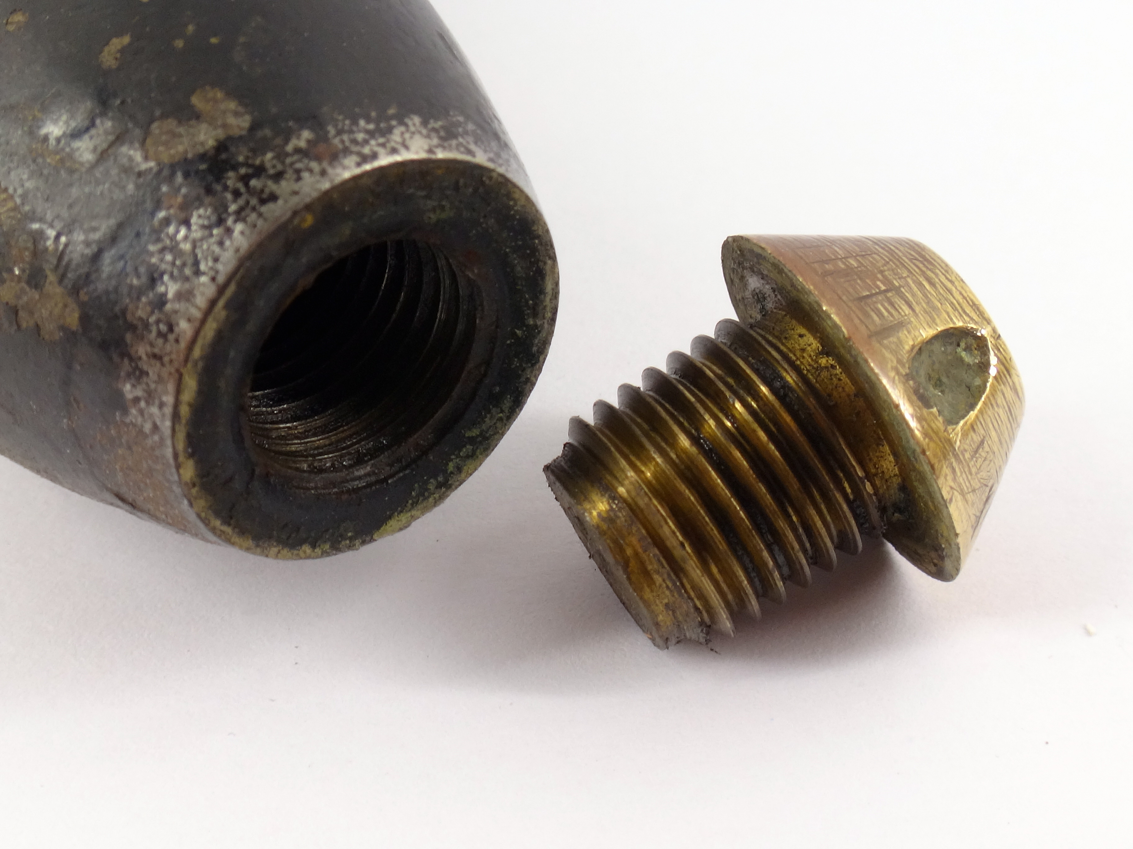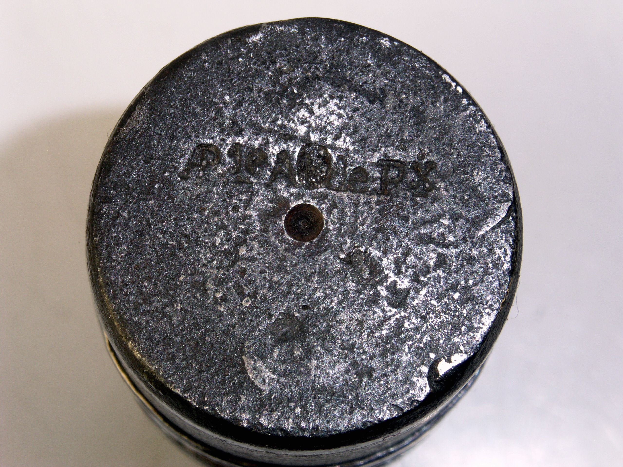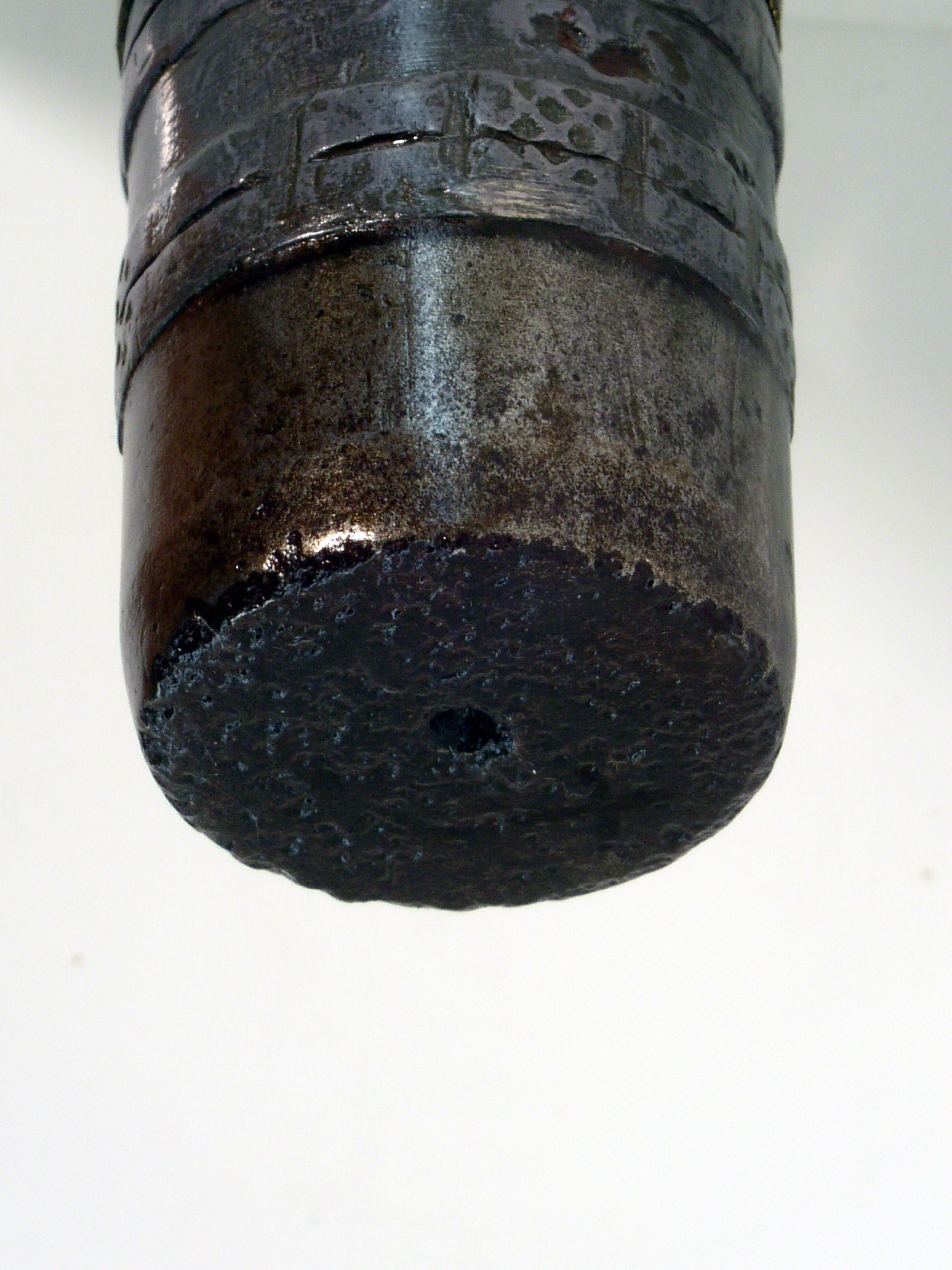Obus explosif à large ceinture de plomb et fusée inerte / Explosive shell with a wide lead band and inert fuse